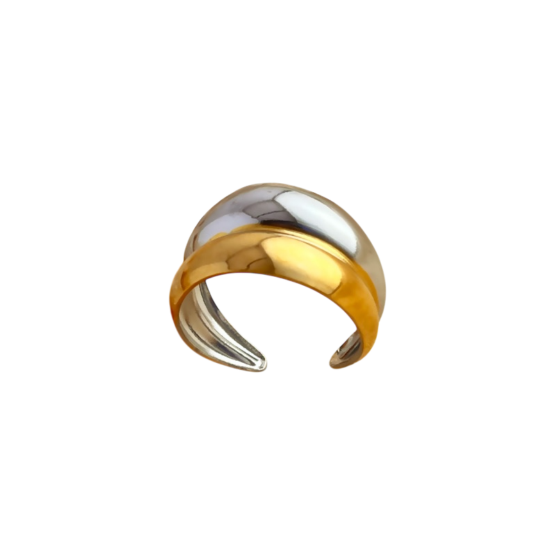Descubre la elegancia de nuestro anillo doble bicolor. Con su diseño minimalista y clásico, este anillo es perfecto para cualquier ocasión. Su doble tono le da un toque único y moderno. Completa tu look con este accesorio imprescindible.